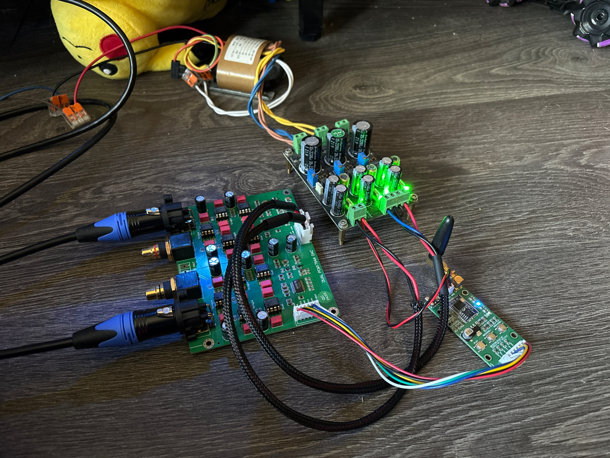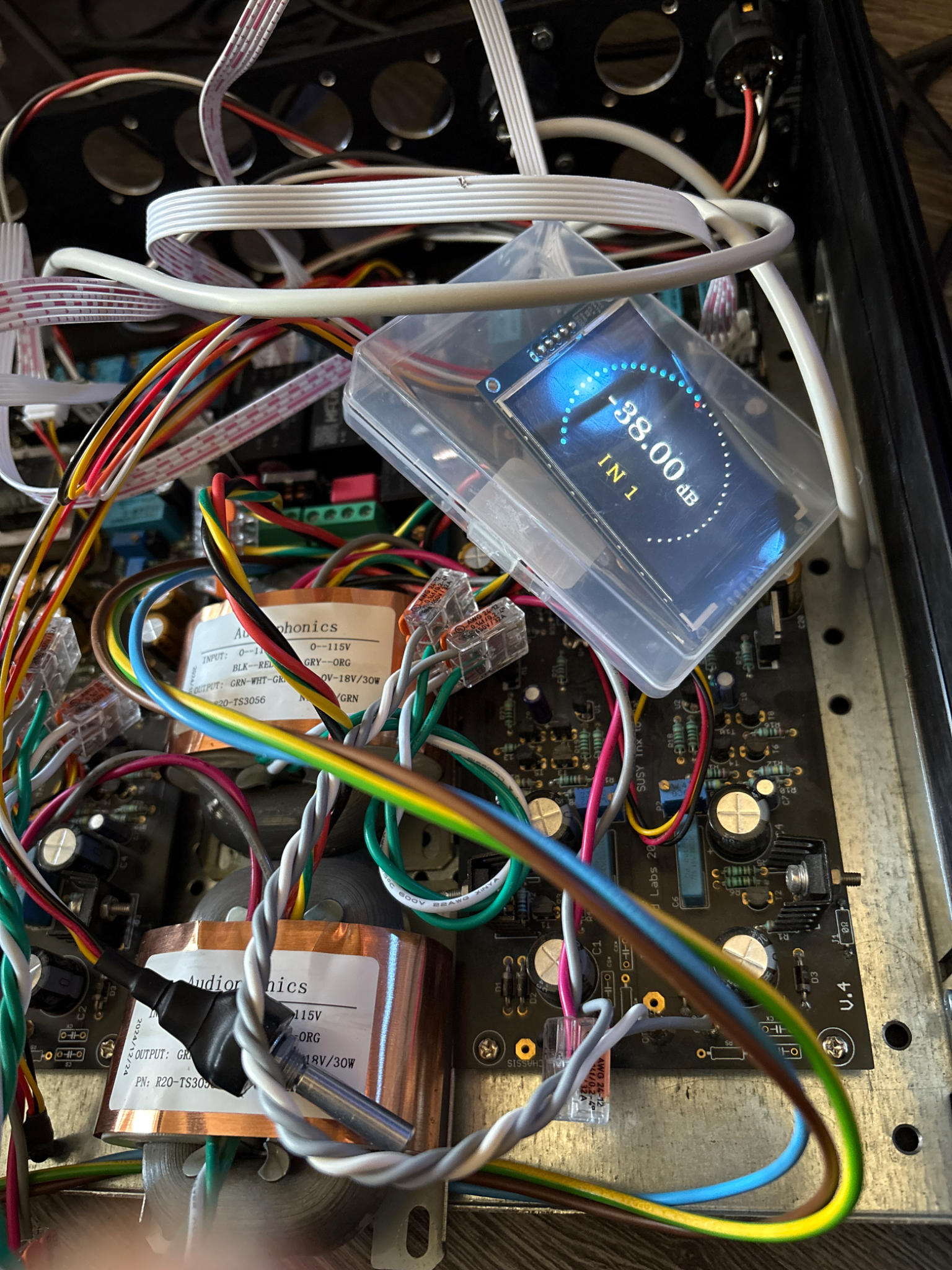 Transfos R-core devant pour minimiser les nuisances avec les transfos audio