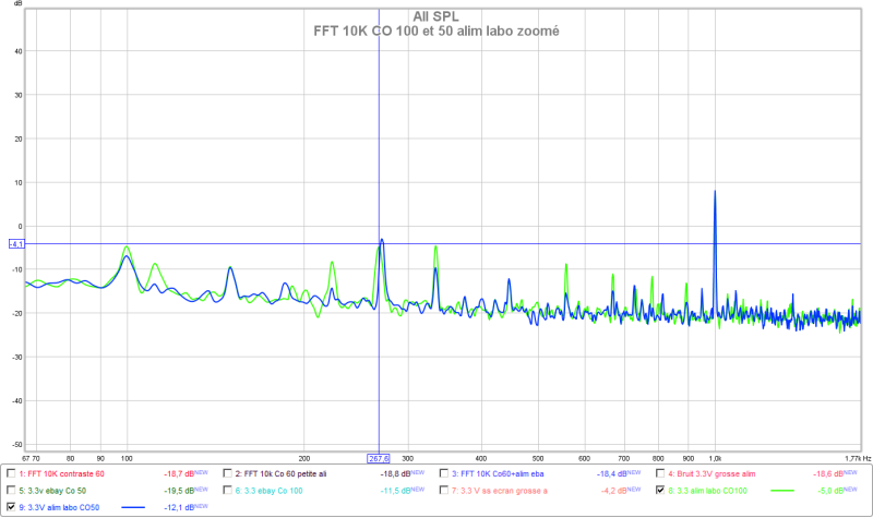 En vert mesure sur le 3.3V contraste à 100, en bleu contraste à 50