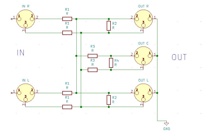 Niveau A = Niveau B => Sortie C soit enceinte L+C+R