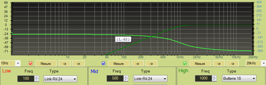 Puis, partir de ce 0 a reculons jusqu'à 1Hz et en avançant jusqu'à 20k en ajoutant ou retirant 360 à chaque saut selon qu'il est montant ou descendant. Ca donnera une courbe dépliée forcément visible et correcte, à multiples de 360° près. Je veux dire par là qu'à Fs/2 phase ne sera peut etre pas 0 mais un multiple de 360°, ce qui est pareil.