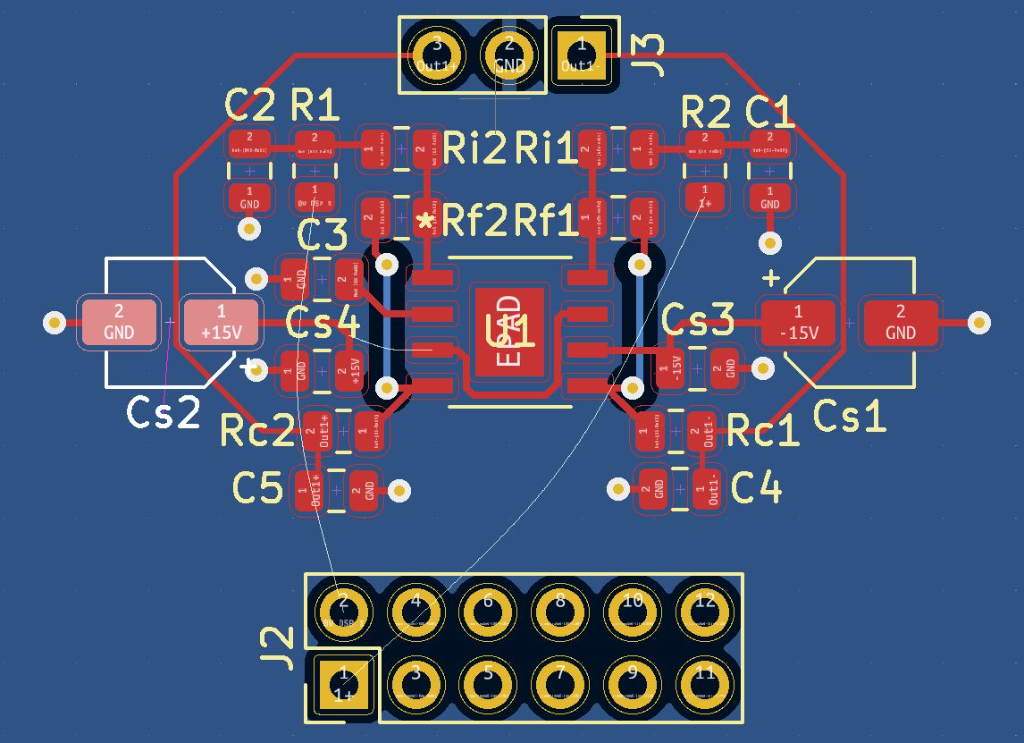Vous noterez que je n'ai pas encore routé +/- 15V ; 0V DSPiy ; 1+.