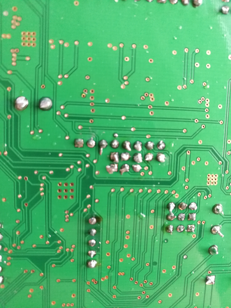 Au centre on voit une soudure sur une pin qui est à la masse (freins thermique) : la soudure semble être complètement détachée.
