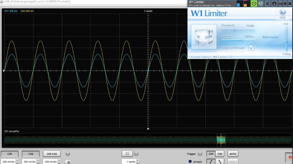 Toujours sur l'hypothèse que le niveau moyen maxi sur un sinus de ma carte son est 17dBu, alors la mon limiteur est calé sur 17-15=2dBu.