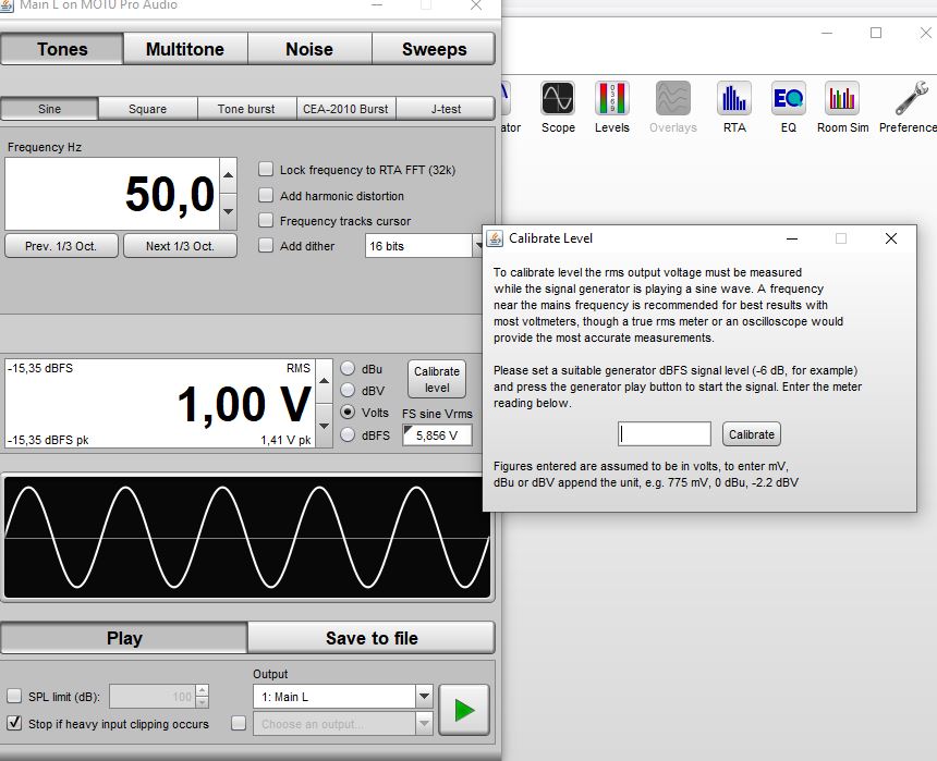 L'option de REW signalée par Thierry n'est pas une limitation du niveau de sortie mais une option de présentation de l'échelle. En principe on affiche un signal à 0dBFS quand la valeur peak est au max de l'échelle. Certains préfèrent afficher -3dBFS pour indiquer la valeur RMS de ce signal sinus. C'est seulement une une préférence de présentation.
