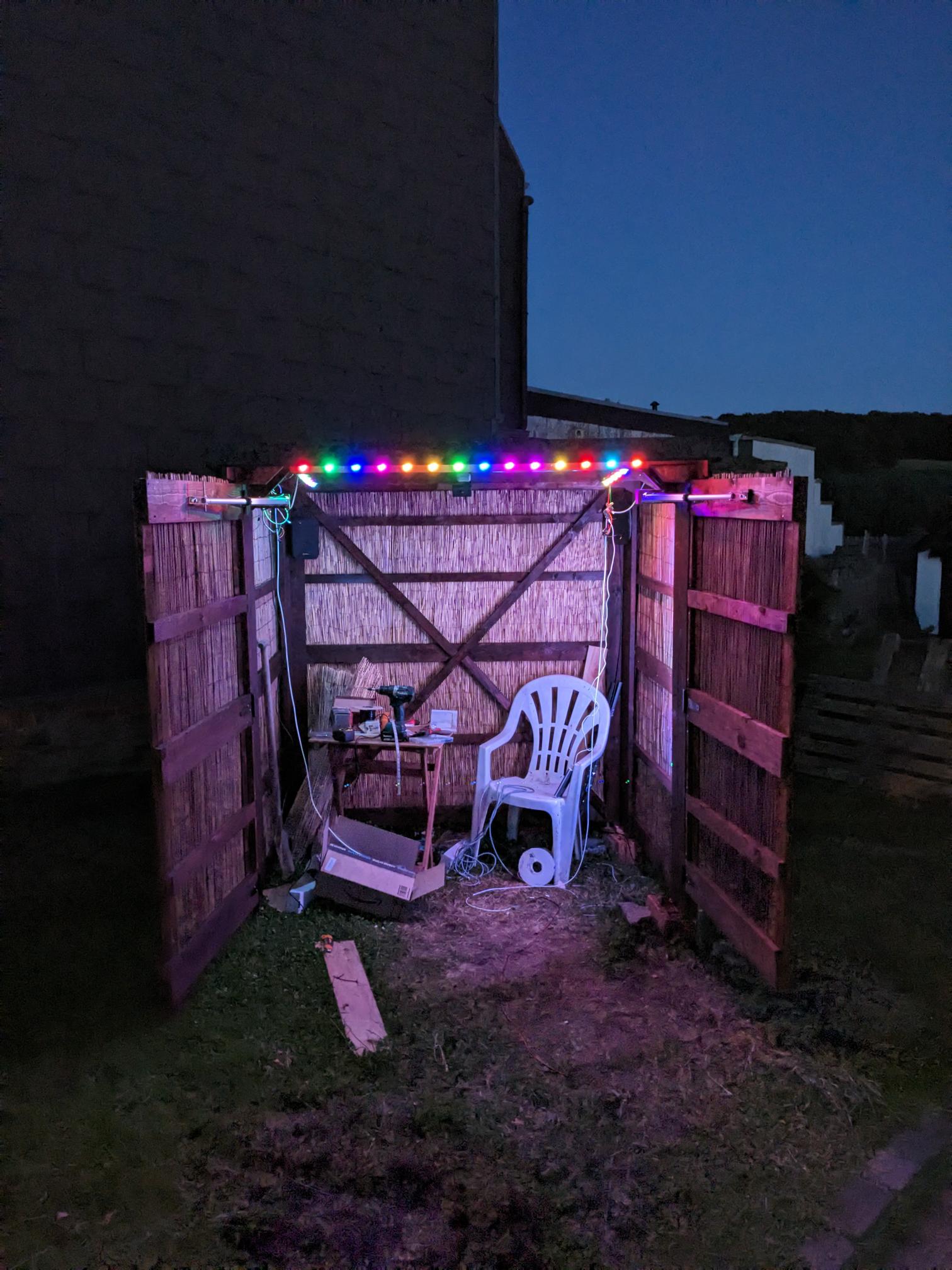 Et le début de l'éclairage en LED RGB via un ESP32 + WLED, là aussi simplement commandé pour le moment via un smartphone.