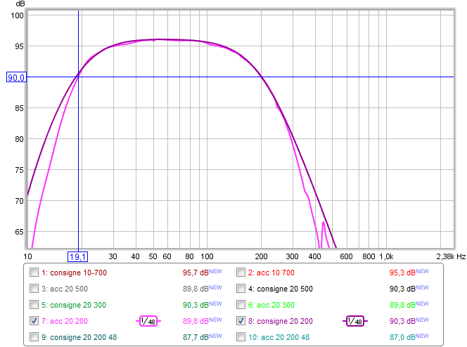Voilà les résultats de l'asservissement du dayton à par le DSPIY à 48kHz.