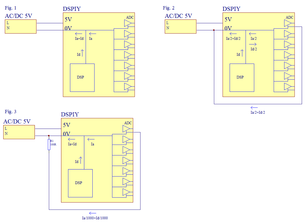 En Fig.2, on rajoute un fil entre le 0V d'entrée d'alimentation du DSPiy et l'une des sorties signaux.