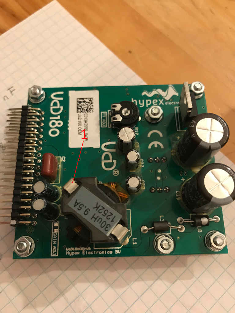 En reprenant la datasheet de l'alim pour voir quel pad de trou de fixation serait susceptible d'être au GND, il suffisait de lire.