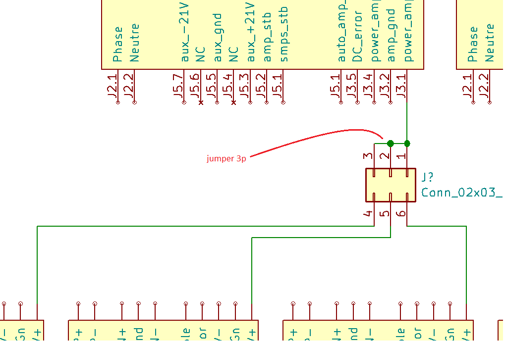 Très étrange le choix des couleurs, il serait plus logique d'avoir un V+= couleur V- une autre ... et commun pour tous les amplis.