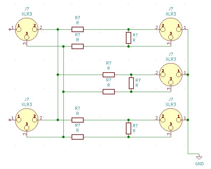 Niveau A = Niveau B => Sortie C soit enceinte L+C+R
