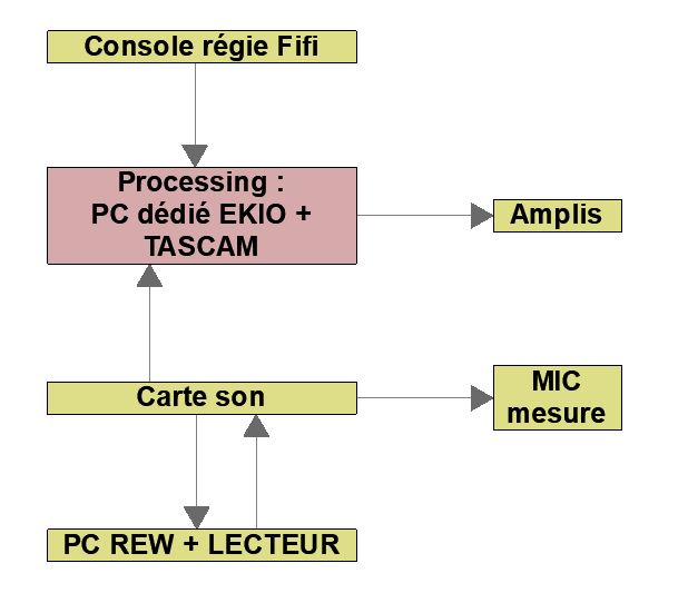Le calage Sub est mesuré avec un outil sur le pc qui utilise une des autres entrées libres de la Tascam.