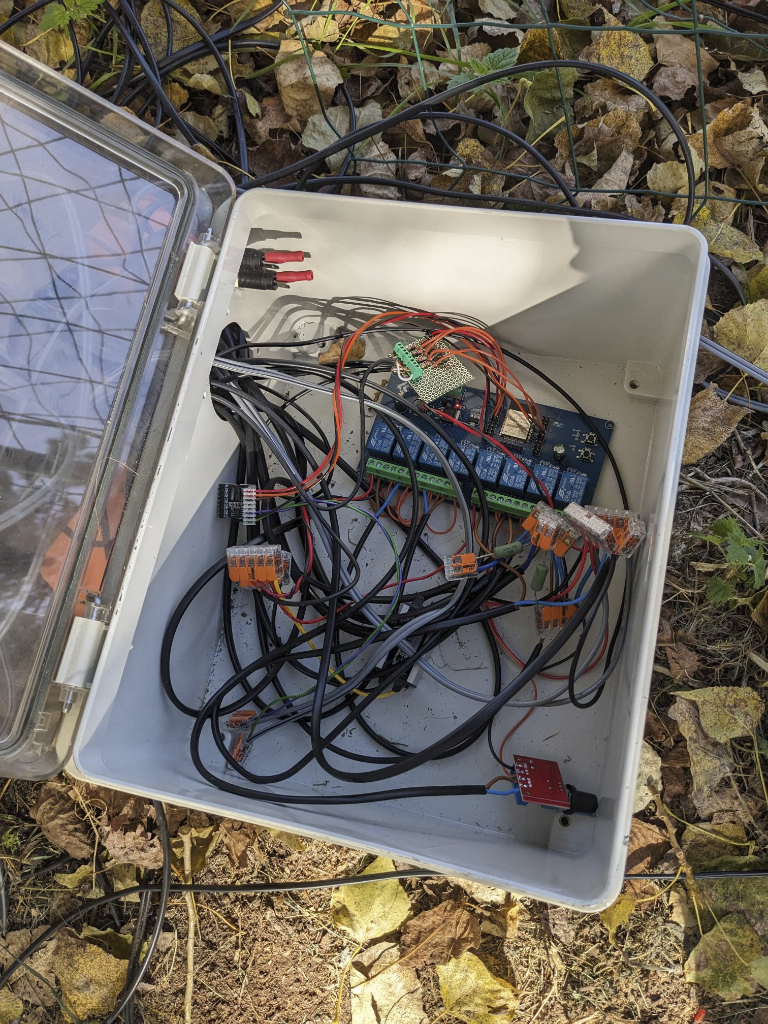 Carte ESP32 à relais + module Mini Lecteur MP3 et beaucoup de fils.