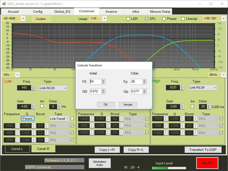 Autre question, est-il possible d'implémenter un filtre "subsonic" dans le DSPiy ? Quitte à rogner d'autres EQ ? N'avoir que 2 presets disponibles ?