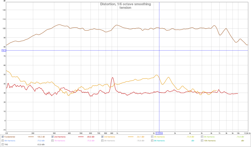 enfin, si on y regarde de près H2 à 900Hz semble meme plus elevé. Cette H2 ne correspond pas a un pic de spl a 1.8k donc le petit générateur i n'est pas en activité et H2 n'est pas corrigée. Au moins c'est cohérent.
