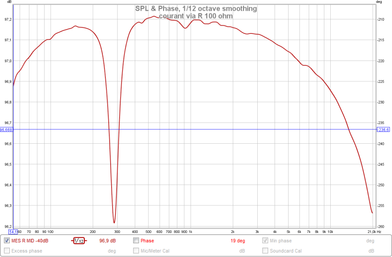Voici quelques tests pour comparer le comportement d'un HP médium (HP quelconque sans grand intérêt) drivé directement par un ampli et en insérant une résistance de 100 ohm en série.