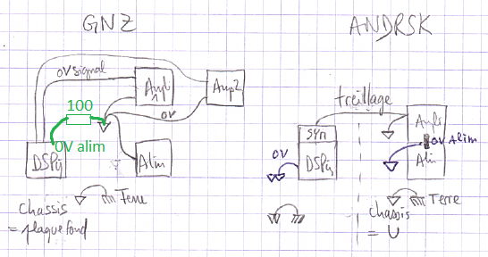 Sur mon Ampli, la terre, le 0V des alims et le 0V amplis sont sur la même vis. viewtopic.php?p=8743#p8743