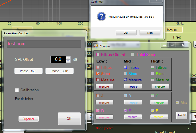 - L'option par défaut a l'ouverture devrait etre "passer par l'onglet mesure". J'ai envoyé un sweep a 0dB au premier clic. Ca surprend !