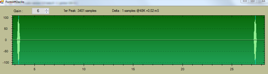 Ensuite Delta donne l'écart entre les 2 peak en retranchant 0.5s qui est le temps coté générateur.