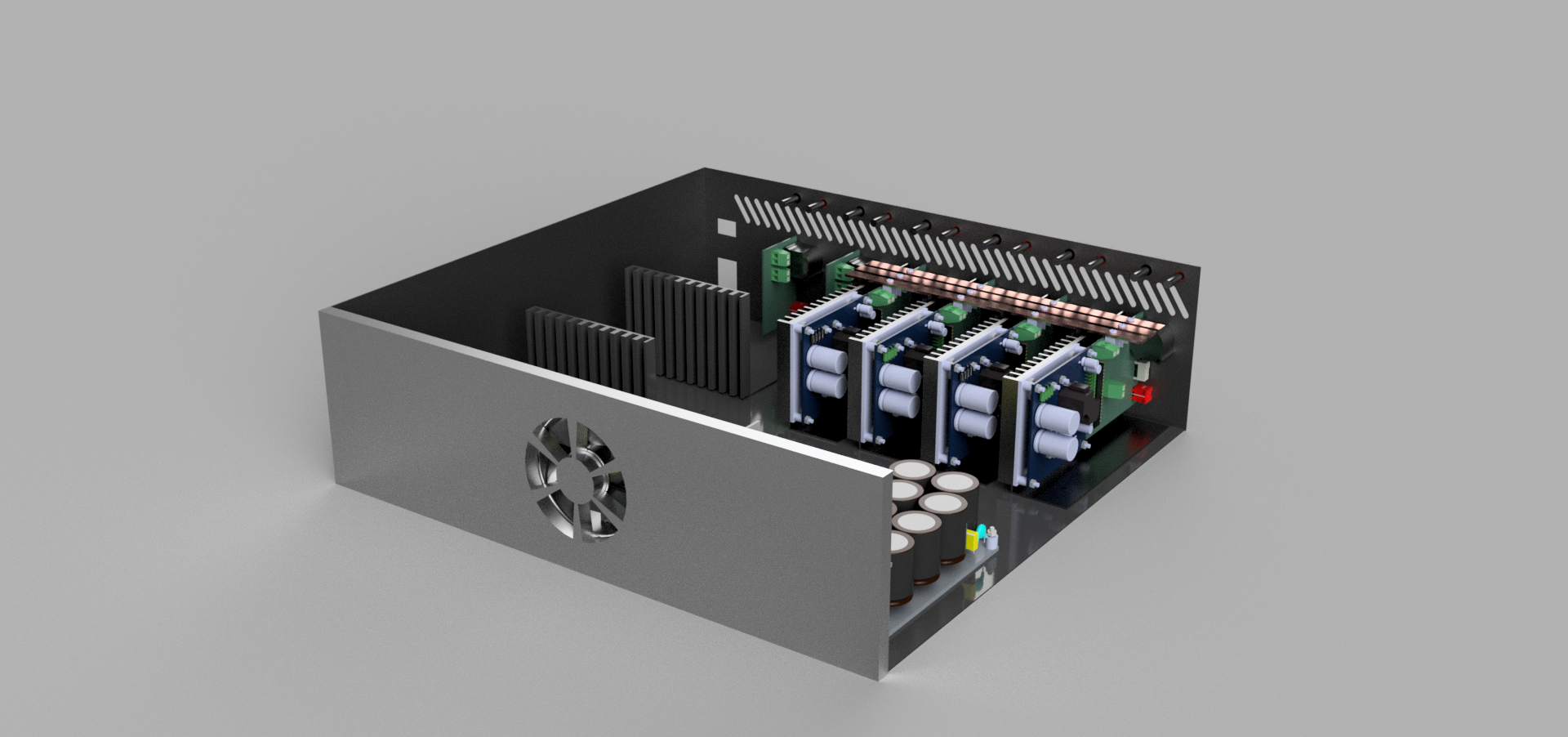 - la convection naturelle dans le boitier n'a pas été particulièrement réfléchie un peu quand même. L'air rentre par les côtés et sort par le dessus