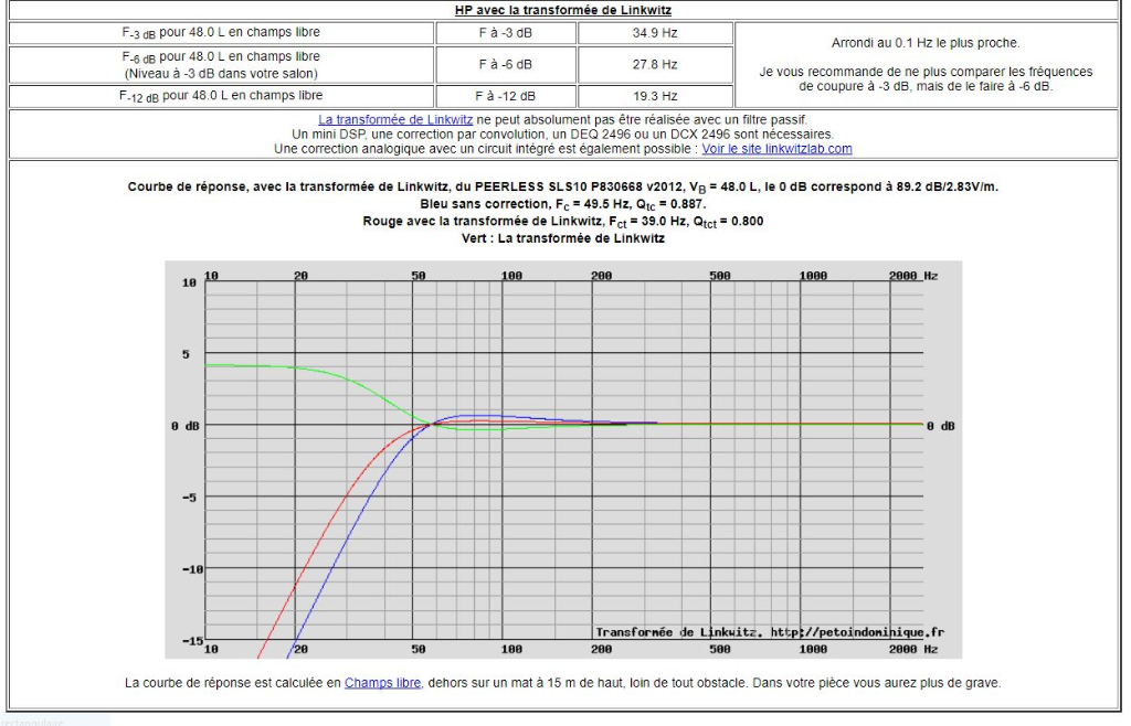J'ai juste mis +2 au woofer finalement, comme je suis en mono il a un peu + de mal à "remplir" la pièce, et puis la transformée baisse son rendement aussi.