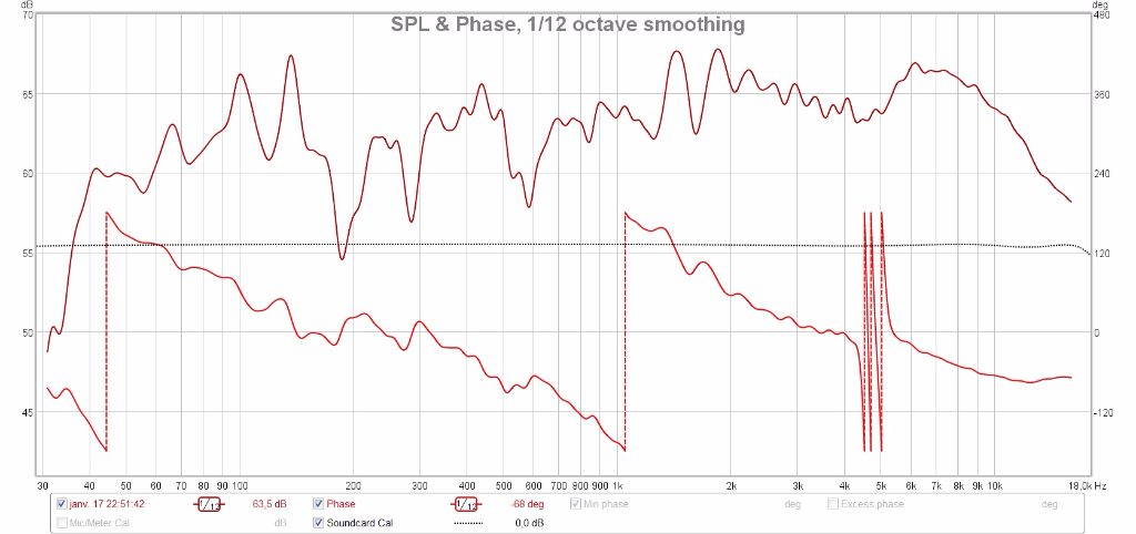 Sinon j'ai pas réussi à reproduire le truc mais j'ai eu sur quelques mesures un énorme accident -30dB à 7500Hz. Peut-être un bug de REW?