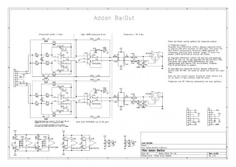 - LME49724 (stock chez mouser) avec gain fixe de 2 + symétrisation pour sortie +/-20dBu (quitte a refaire une carte autan mettre du lourd..)