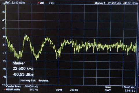 Pour cela j'ai utilisé un analyseur de spectre qui correspond +- à une mesure en audio mais avec la possibilité de monter bien plus haut en fréquence.