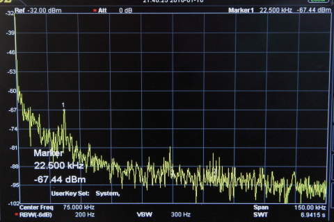 Pour cela j'ai utilisé un analyseur de spectre qui correspond +- à une mesure en audio mais avec la possibilité de monter bien plus haut en fréquence.