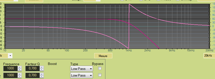 Là on constate qu’à l’extrême, une fréquence de 0Hz ne donnera rien en sortie et donc 0V en Uout.