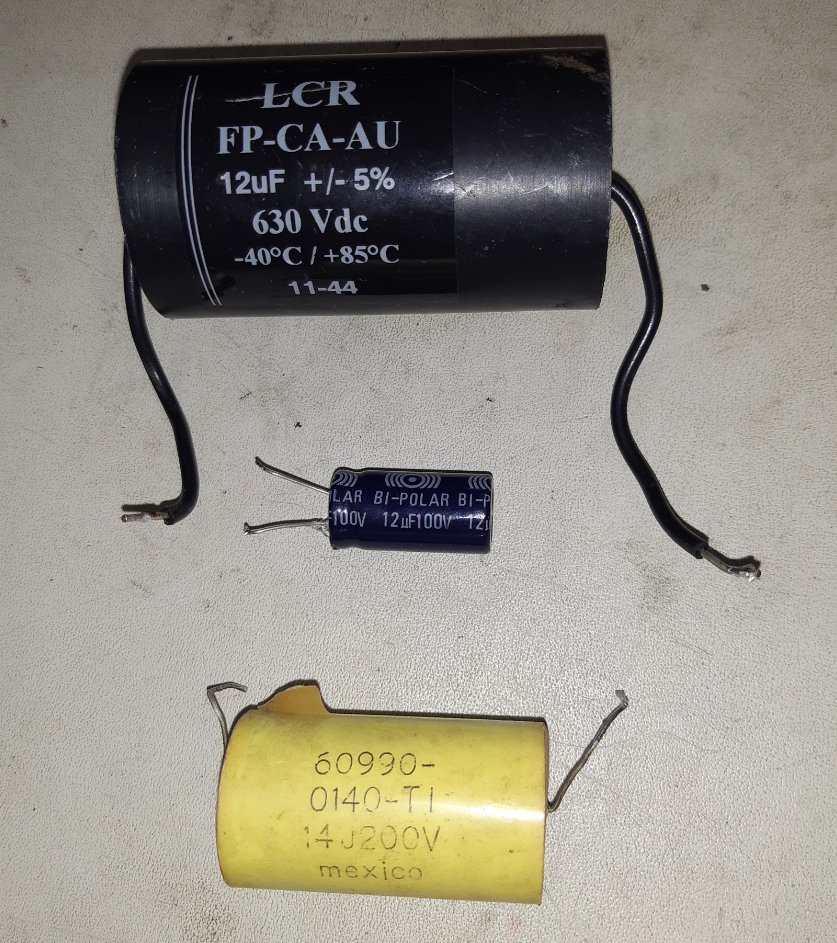 elle provient d'une JBL TLX8.La jaune provient aussi d'une JBL mais pro, la 4425 et contrairement aux deux autres de 12µF fait 14µF.