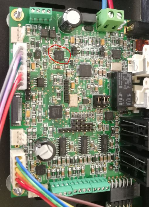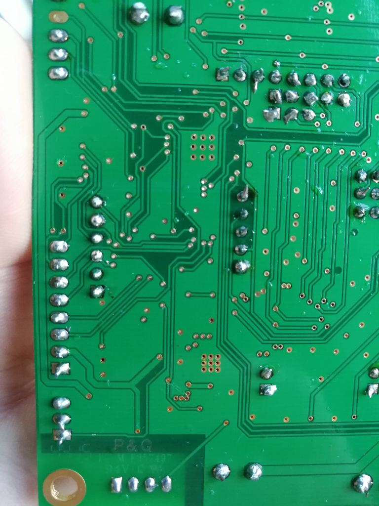 Au centre on voit une soudure sur une pin qui est à la masse (freins thermique) : la soudure semble être complètement détachée.