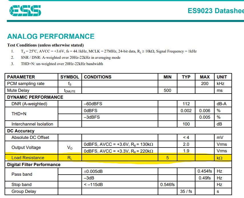 On aurait 750 ohm ce qui est bien trop peu pour le DAC.