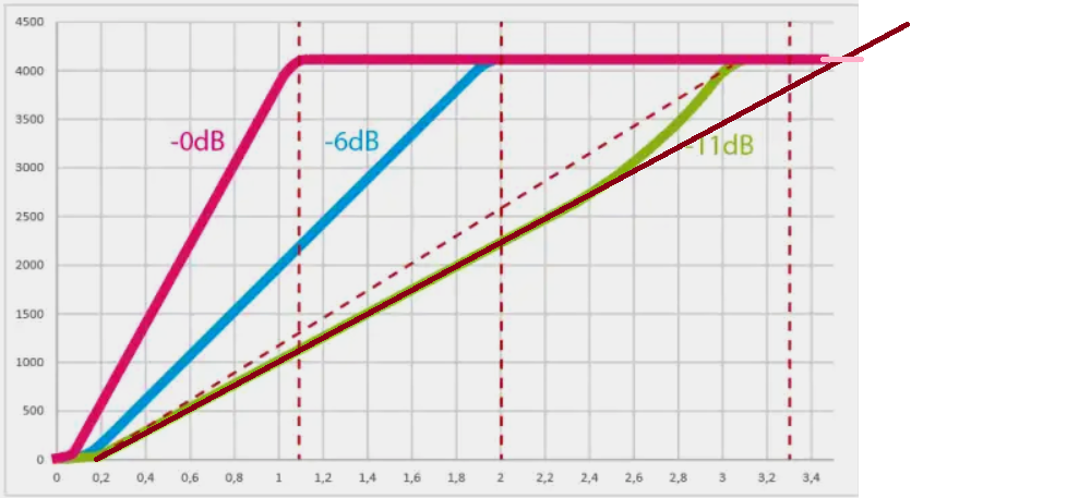 Si l’on prend une atténuation de 0dB (on n’atténue rien) la plage théorique de mesure serait de 0V à 1.1V pour les valeurs retournées de 0 à 4095.