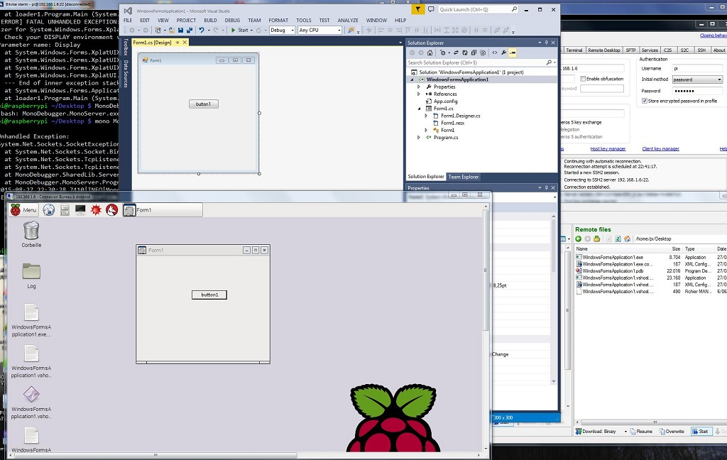 Via un petit utilitaire, Bitvise xterm, je peux transférer les fichiers compilés par VisualStudio sur le bureau du RPi.