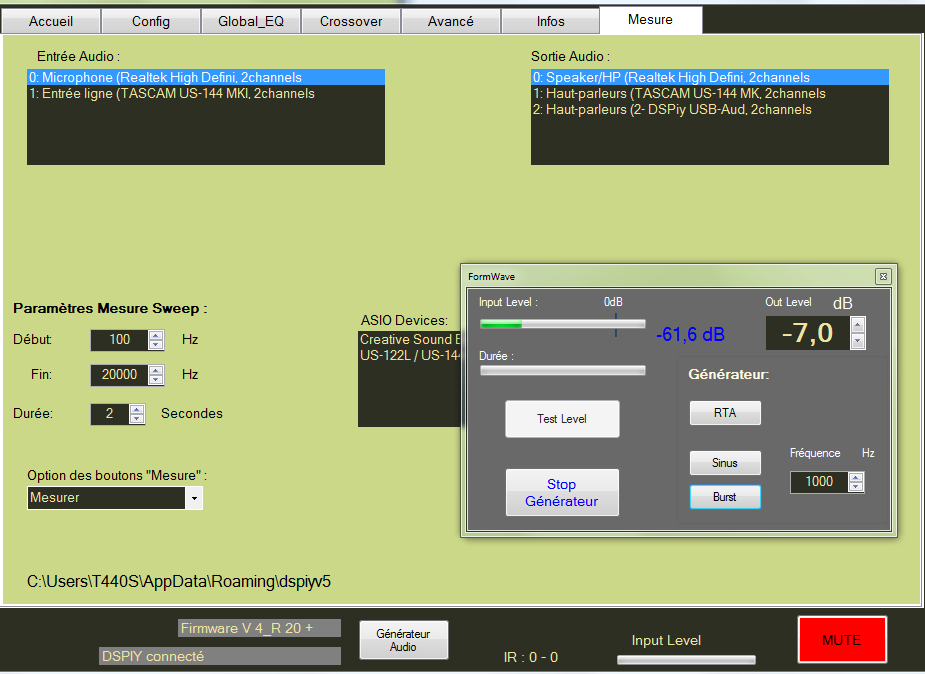 mais j'utilise la carte son interne de mon PC et pas sur qu'elle soit compatible Asio, mais ce qui est bizarre c'est qu'il fait la mesure, et il plante à la toute fin, au moment ou la fenêtre doit se fermer et afficher la courbe. Je ressayerai avec ma carte son externe.