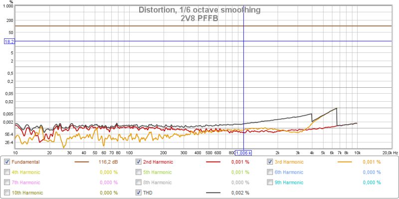 Dans le graphe précédent, on voit qu'à 20W la disto à 1kHz est environ 3x moindre qu'à 1W.
