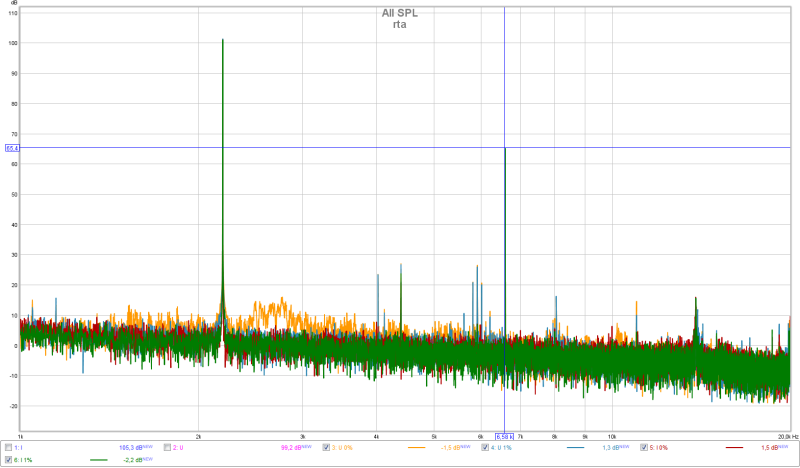 Maintenant je passe en RTA avec le générateur de REW à 2.2KHz qui permet de générer de la disto.
