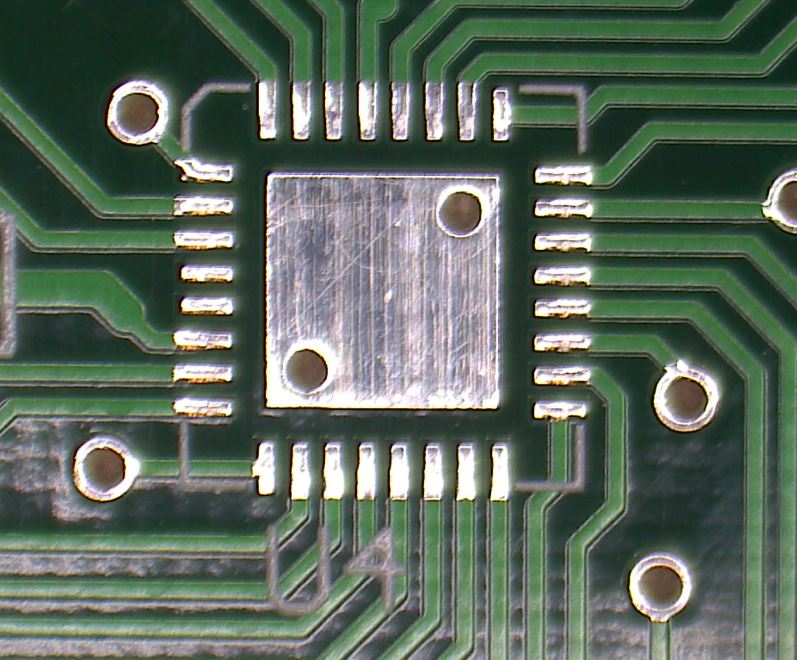 Voici l'IC, on voit que la soudure se fait principalement en-dessous du composant.