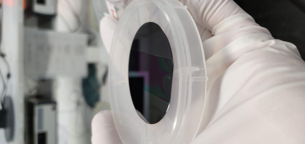 Ici c'est un wafer temoin, au milieu il y a un dépot d'oxyde, dont on va mesurer l'épaisseur. On s'en sert après pour déterminer le temps de gravure du vrai wafer.