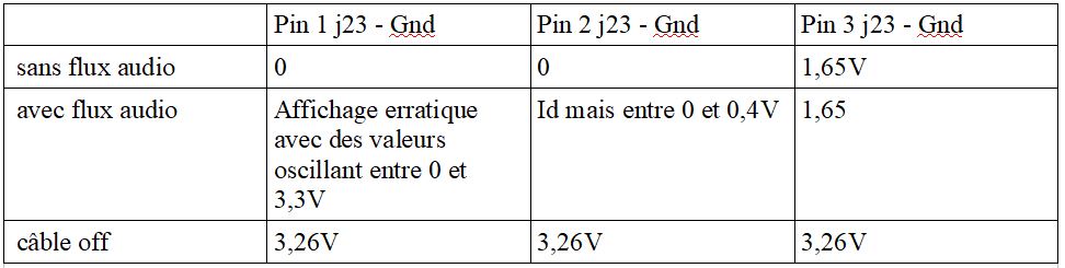 bon la jonction physique semble fonctionner via le jumper, j'ai la même chose, sauf une chute de tension sur la mesure câble off.