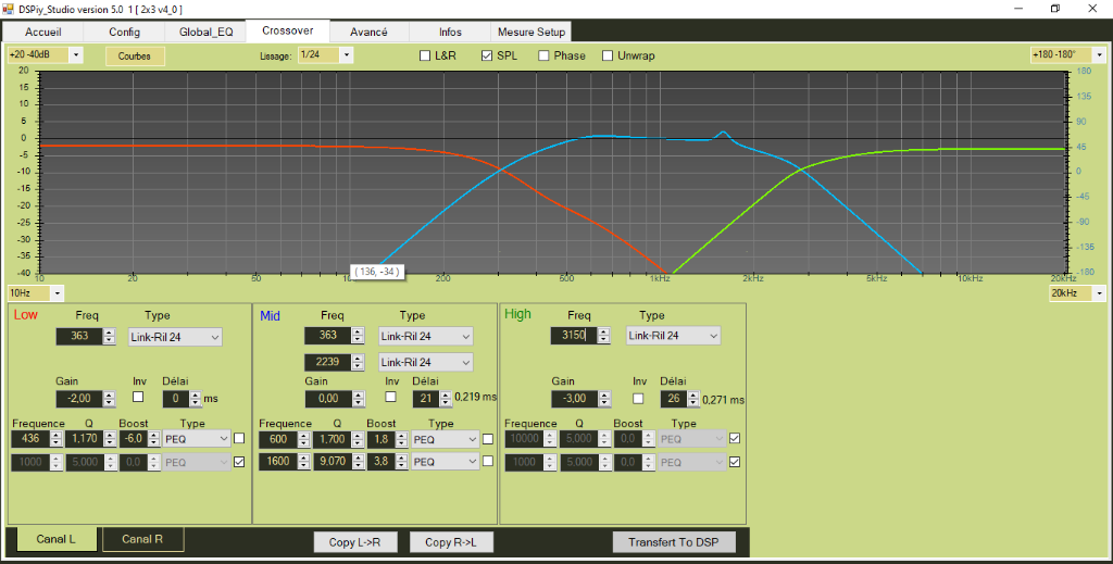 Au final j'ai tout filtré en LR24 à 400 Hz et 3kHz.