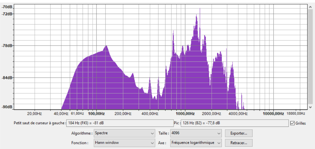 Il faut donc tout lire sur ce RTA avec une correction de -79.5dB.